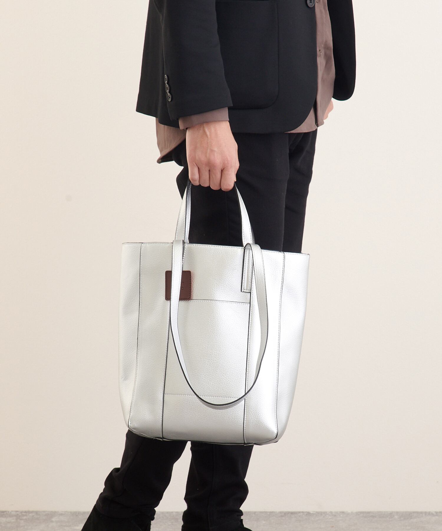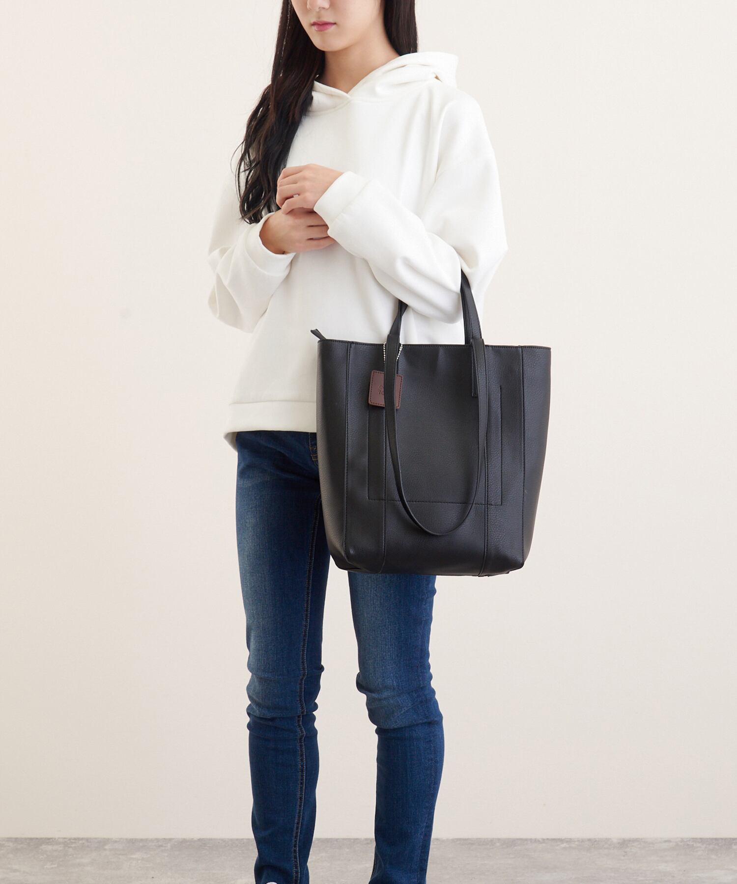 深めの縦長デザインでしっかりとマチ幅があるため収納力もたっぷり。肩掛け可能な2WAY仕様で使い勝手の良さを実感頂けます。