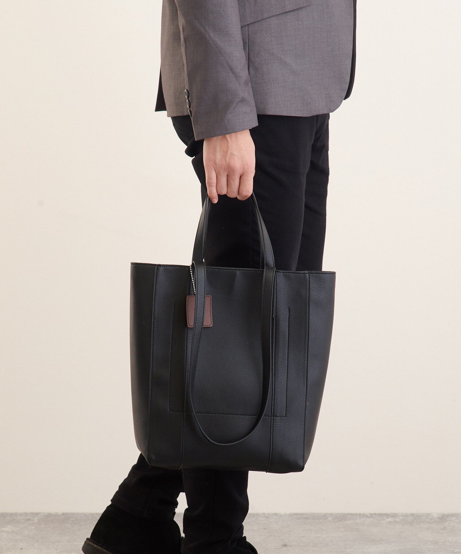 無駄のないシンプルなデザインだからこそ質感にこだわったレザー素材を使用し、持つだけでコーディネートにこなれた雰囲気をプラス。大人にぴったりのトートバッグです。